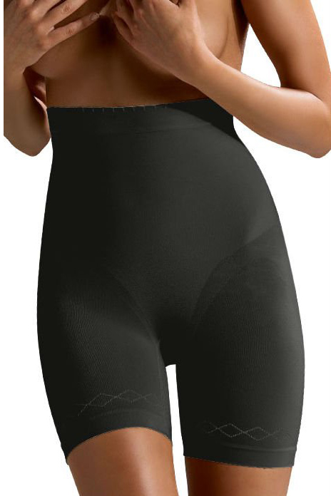 Shaping short with high compression providing a firm level of support. Soft microfiber and silicon on the waist. Jacquard panelled and scalloped edge. Shapes the waist lifts the bottom shapes the hips slims the thighs and smooth the tummy. Anti-bacterial gusset. Item comes packaged in a Control Body box.